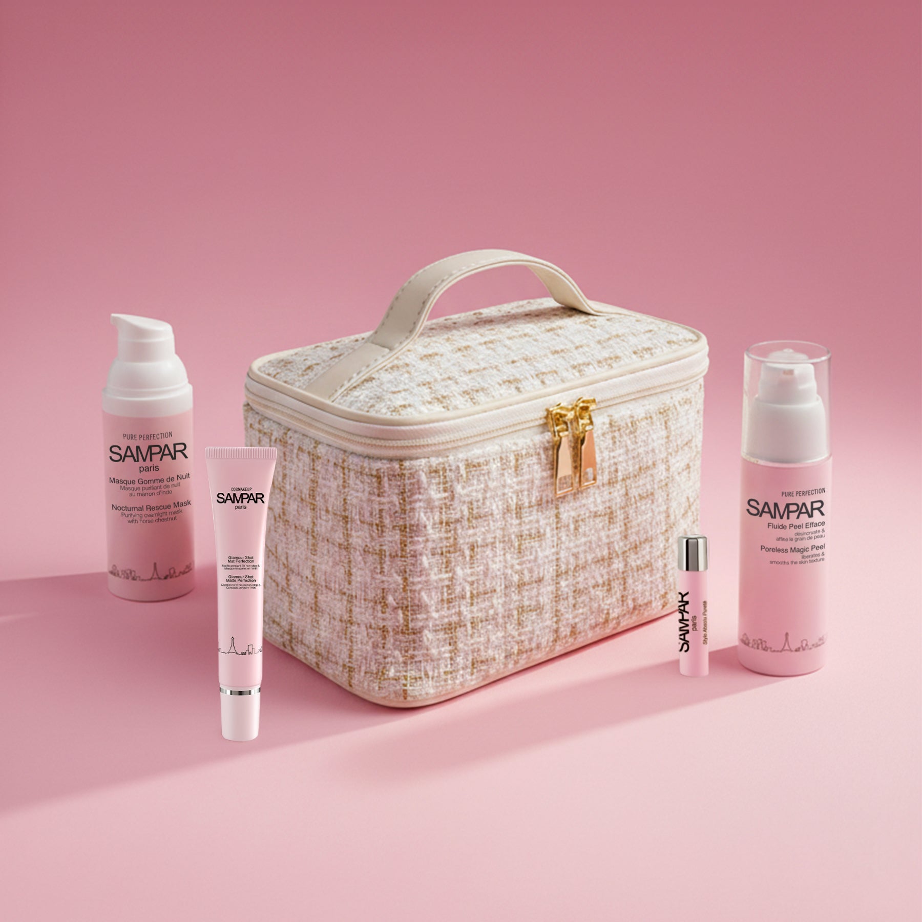 Cette trousse Winter Break réunit les soins purifiants Sampar pour une peau nette, apaisée et éclatante, même en plein hiver.