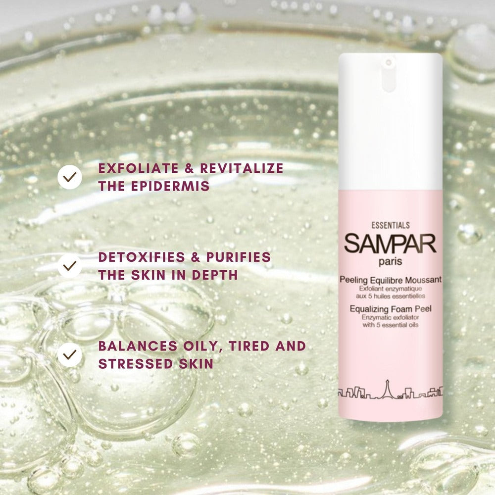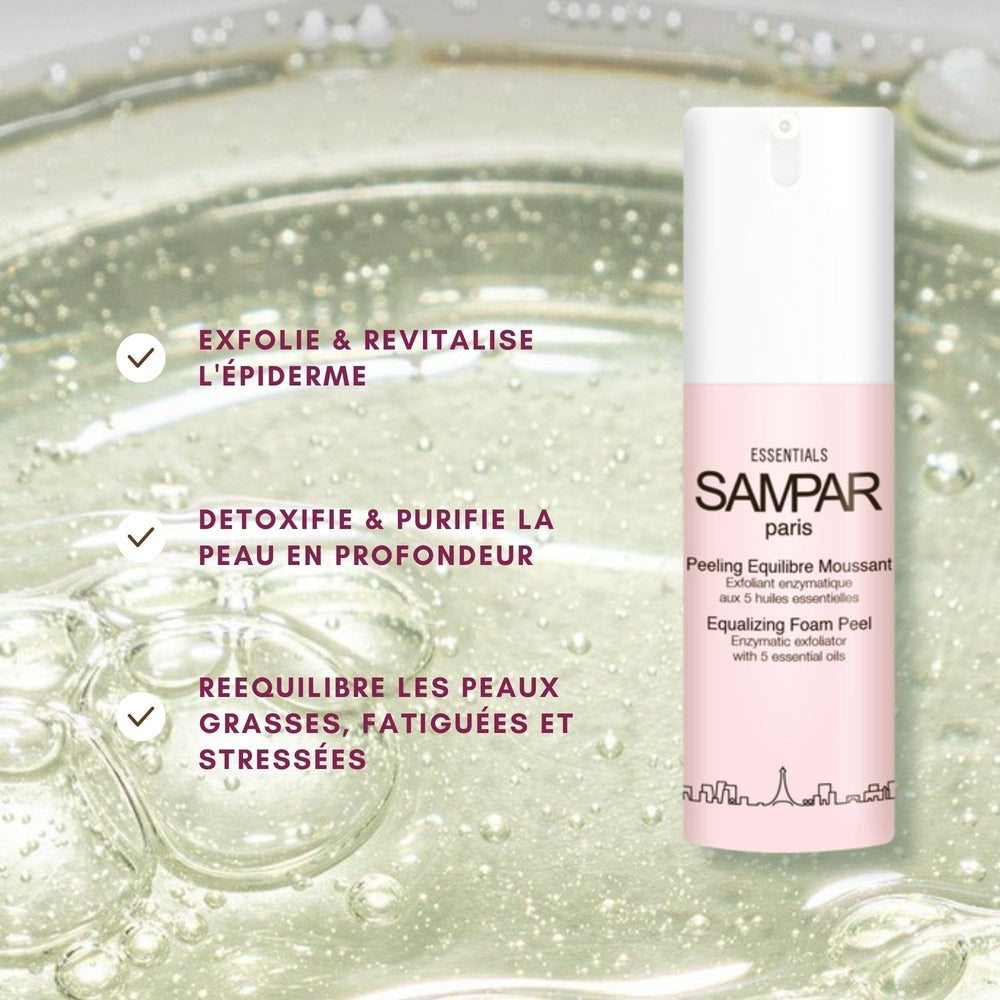 Appliquer le Peeling Équilibre Moussant 2 à 3 fois par semaine sur un visage humide en évitant le contour des yeux. Laisser agir 2 minutes puis émulsionner avec de l’eau. Rincer abondamment.